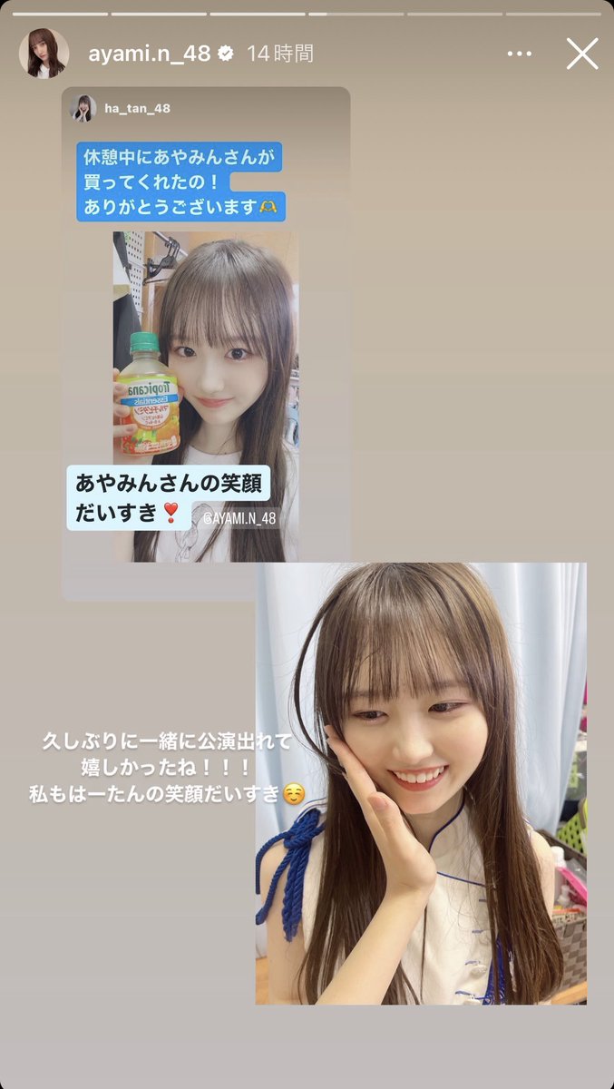 あやみんデレデレ笑 本当にはーたん好きなのが表情から伝わってきますよね。